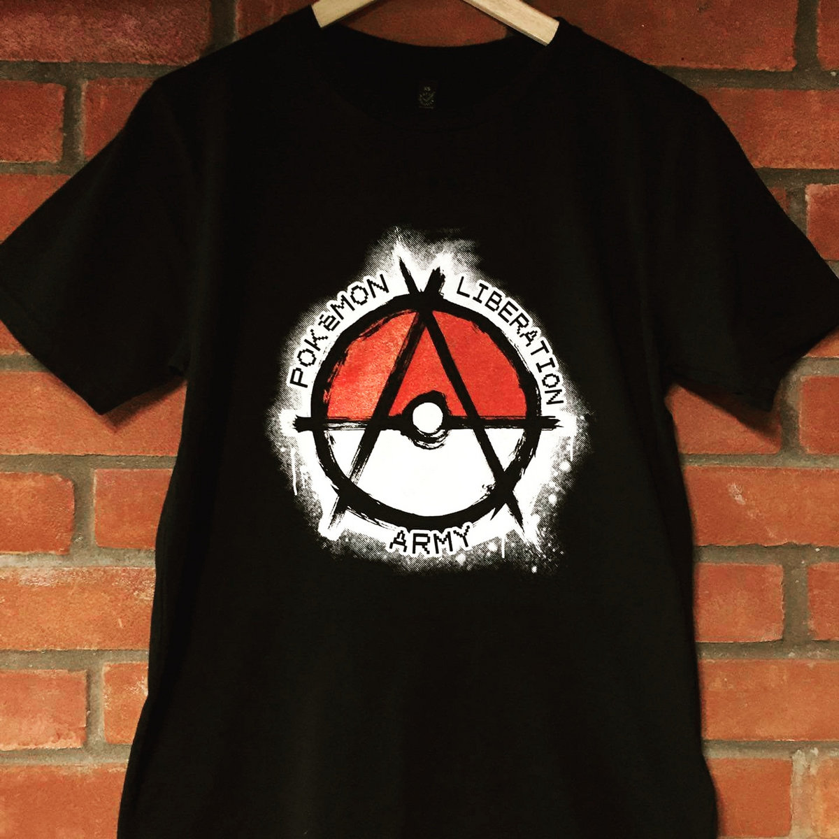 The excellent Pokemon Liberation Army design by Rebecca Hahner Illustration screen-printed by Ouroboros on black EarthPositive t-shirts.